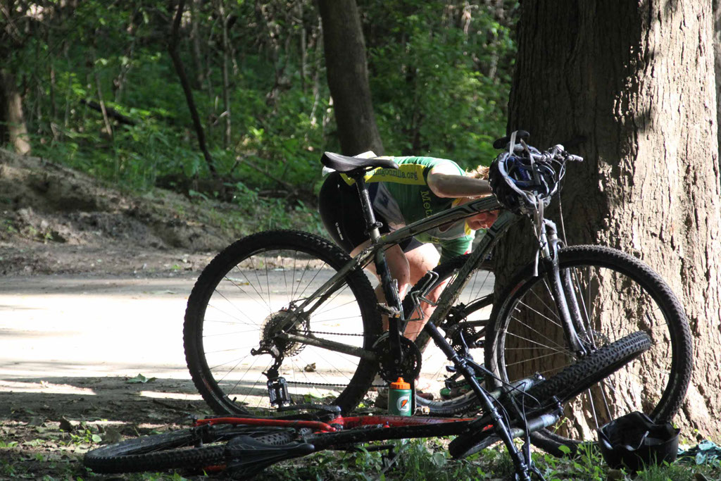We hit the first water stop and decided since we were only 20 miles into the race and still have plenty of fluids and were packed down with Honey Stinger that we didn’t need to stop. We went on still behind the STLCC guys, the SLU guys had started to pull away. We were keeping a good pace and hit a few more hills when all of the sudden we didn’t see the STLCC guys anymore. The road was still crowded and we figured somewhere in the hills they must have just pulled away and dropped us. We fell in with a couple other riders and made it to the next water stop. We quickly got water and were heading out when we saw the STLCC guys again. We thought since we had a short loop to ride and would come back by the stop that they had probably already finished the short loop, we just couldn’t figure out how they got that far in front of us.